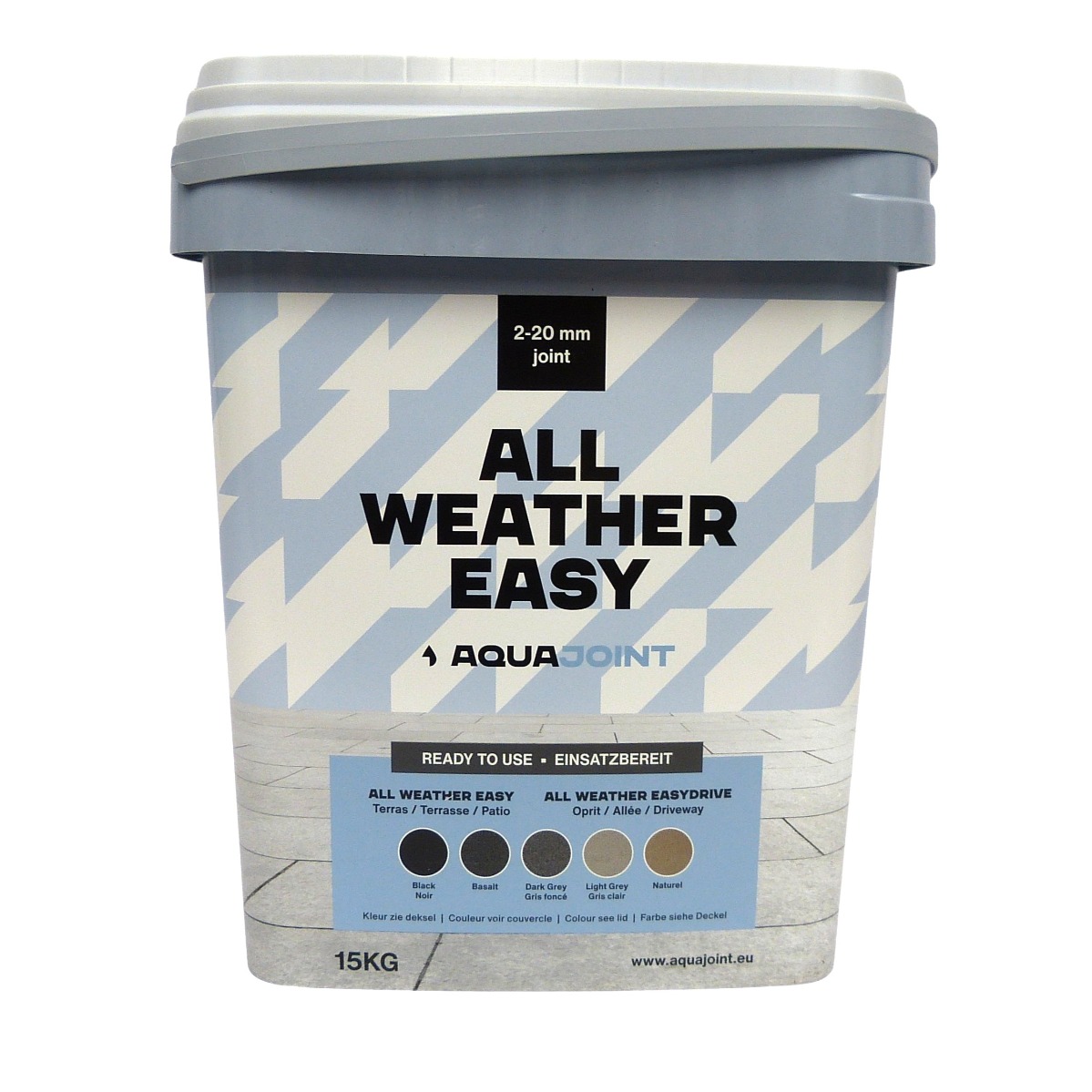 AquaJoint All Weather EASY est un mortier de joint prêt à l'emploi, perméable à l'eau, pour terrasses, allées de jardin et pavage décoratif. Il offre un joint fort et durable qui résiste aux intempéries et prévient la croissance des mauvaises herbes.