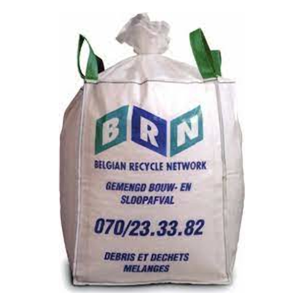 Un sac à ordures de construction qui peut contenir 1500 kg ou 1 m³ de déchets de construction. Tous les coûts (le big bag, la taxe environnementale, les frais de collecte et de traitement) sont inclus dans le prix.