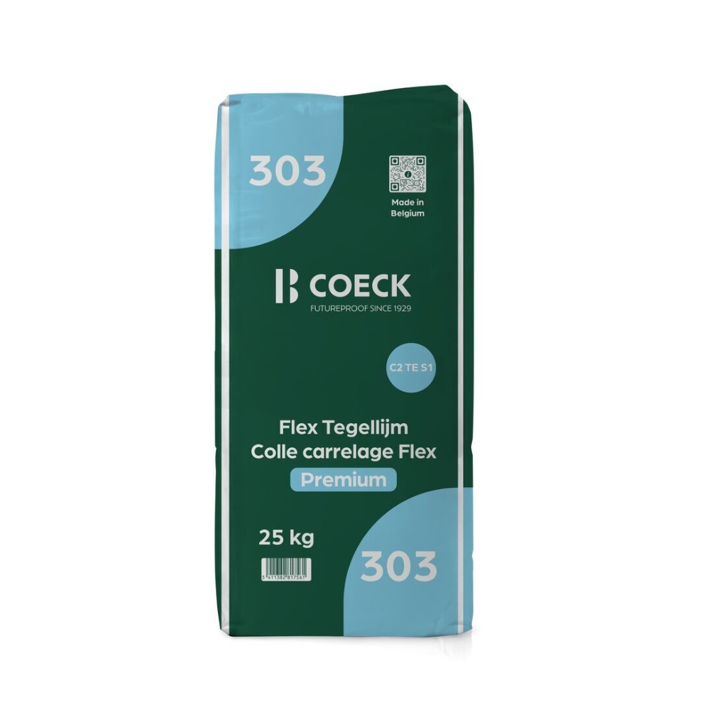 La colle Flex Premium Coeck (303) est une colle améliorée à base de ciment, en poudre, avec flexibilité permanente et haute adhésion. La colle combine un temps ouvert prolongé avec un faible glissement, permettant un travail précis et efficace, y compris sur les murs et avec des formats grands. Applicable sur la plupart des surfaces portantes (prétraitées si nécessaire) et pour les espaces secs et humides; en cas de contact direct avec l'eau, toujours avec membrane d'étanchéité derrière/sous le carrelage.