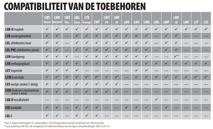 L'échelon est compatible avec les types d'escaliers de combles LWS/LWK, LWL, LWZ, LMS, LMK.