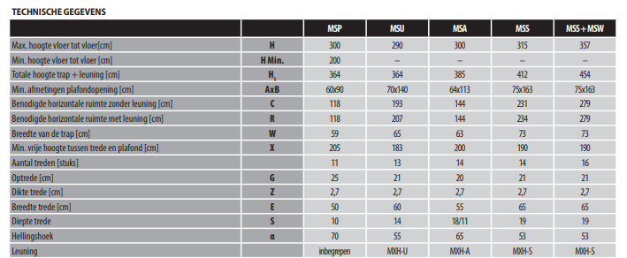 - Mogelijkheid om de trap verticaal weg te bergen