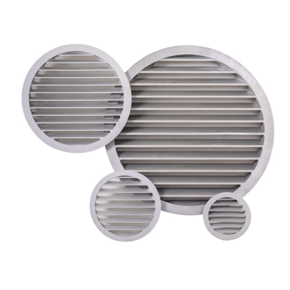 Les grilles rondes en aluminium coulé de Tilmar T170, équipées d'un moustiquaire, sont des grilles solides pour murs extérieurs en aluminium qui peuvent être raccordées à des conduits ronds. Les grilles s'adaptent notamment directement aux conduits spiro.