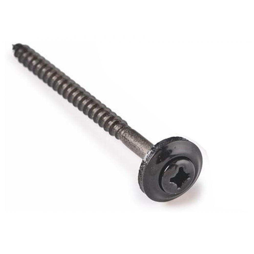 Une vis inox pour faîtières et noues avec joint en néoprène et rondelle, recouverte de noir, pour la fixation de tuiles, faîtières et noues.