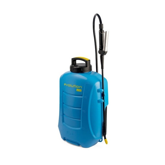 Evolution 15 LTC est un pulvérisateur sur batterie avec une capacité de 15 litres et un fonctionnement électrique, adapté pour une utilisation dans de grands jardins.