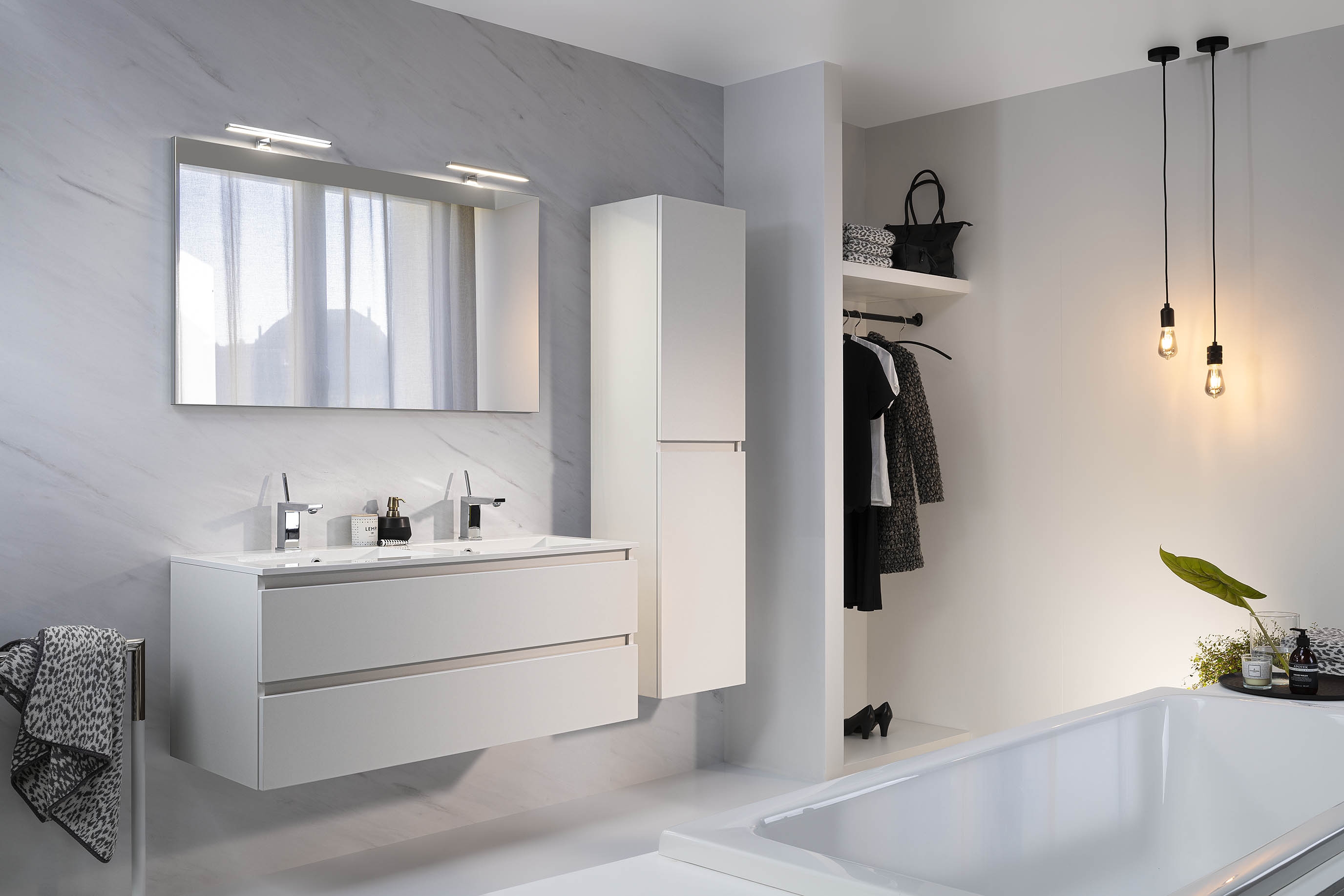 Meuble de salle de bain avec 2 tiroirs sans poignées + miroir 1200 mm blanc