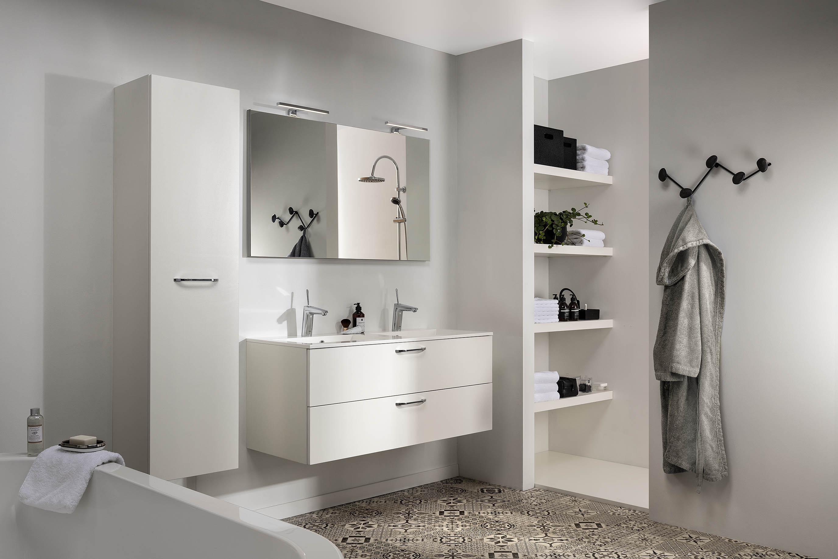 Meuble de salle de bains avec 2 tiroirs + miroir 1200 mm blanc