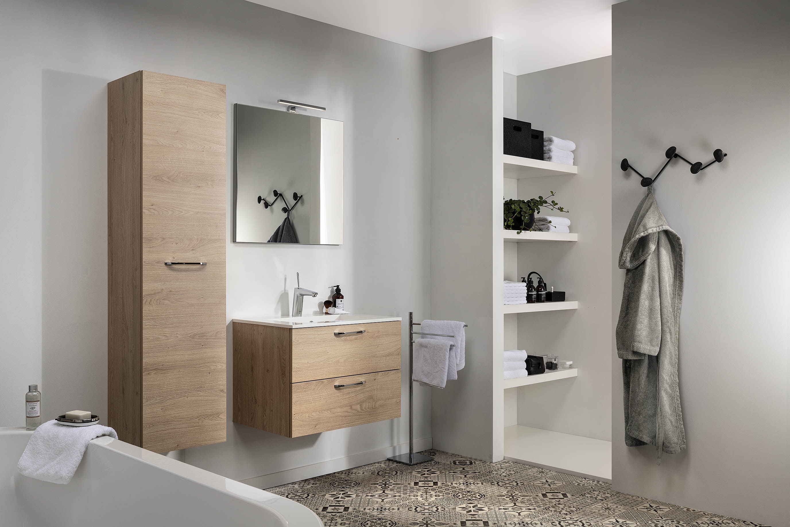 Meuble de salle de bain avec 2 tiroirs + miroir 700 mm chêne clair