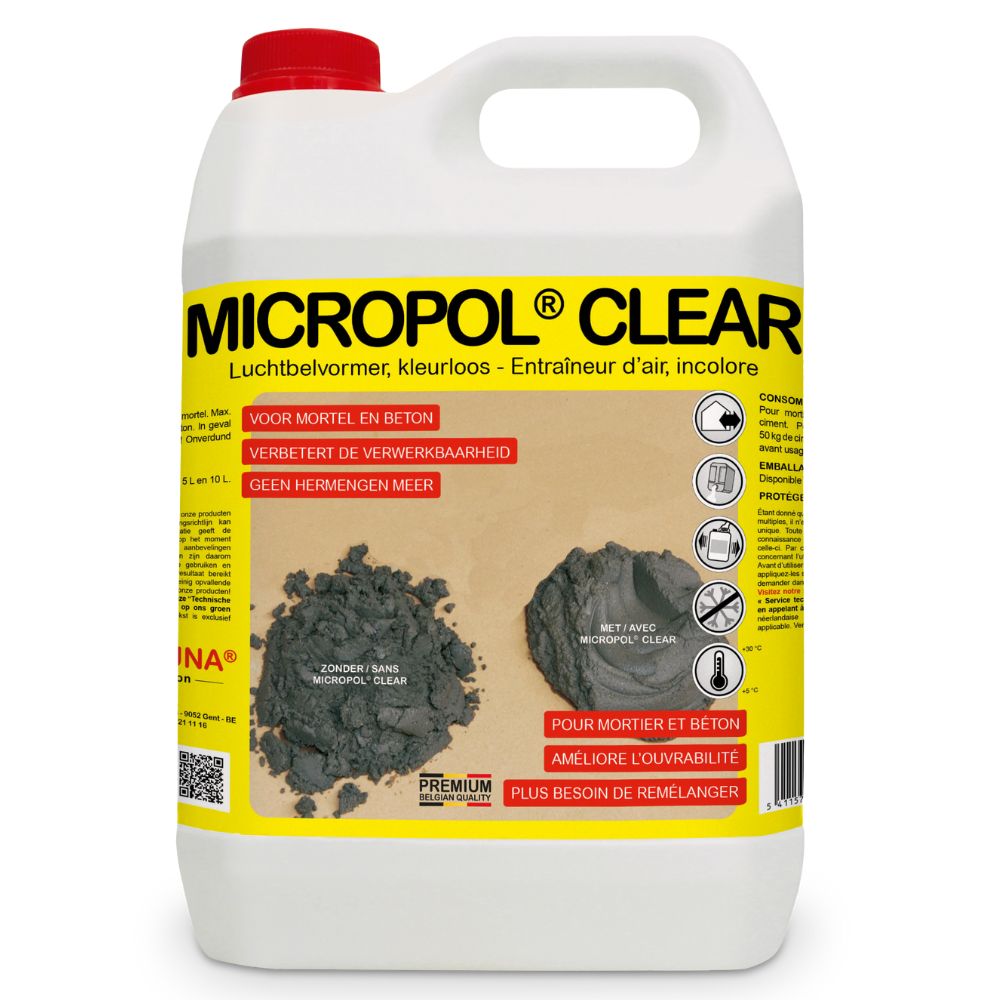 Micropol mortelvet de 5L pour une meilleure maniabilité du mortier et du béton en formant des bulles d'air.