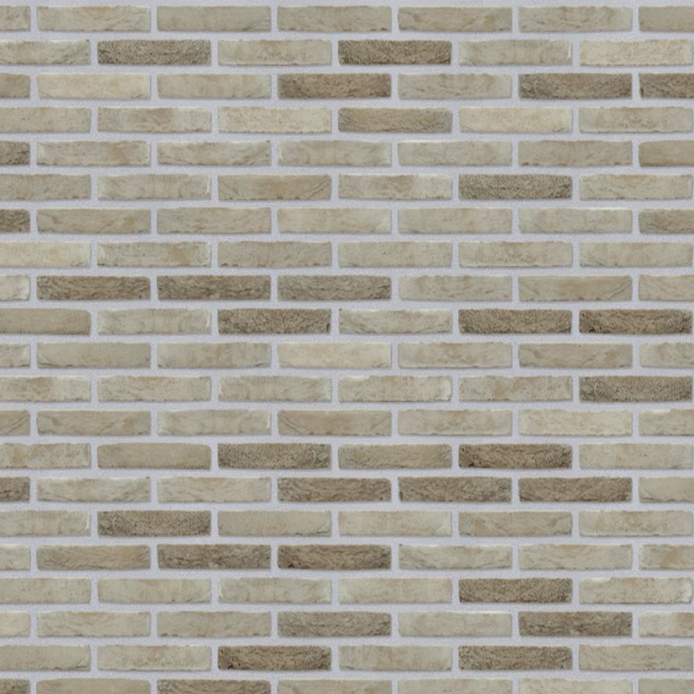 Les pierres de façade (non perforées) ont cinq côtés sablés et une face plate qui peut être équipée d'une longue entaille oblique. La structure est rugueuse avec de fines veines irrégulières à la surface sablée. Le processus de cuisson se déroule dans un four tunnel alimenté au gaz, sous une atmosphère légèrement réductrice.
