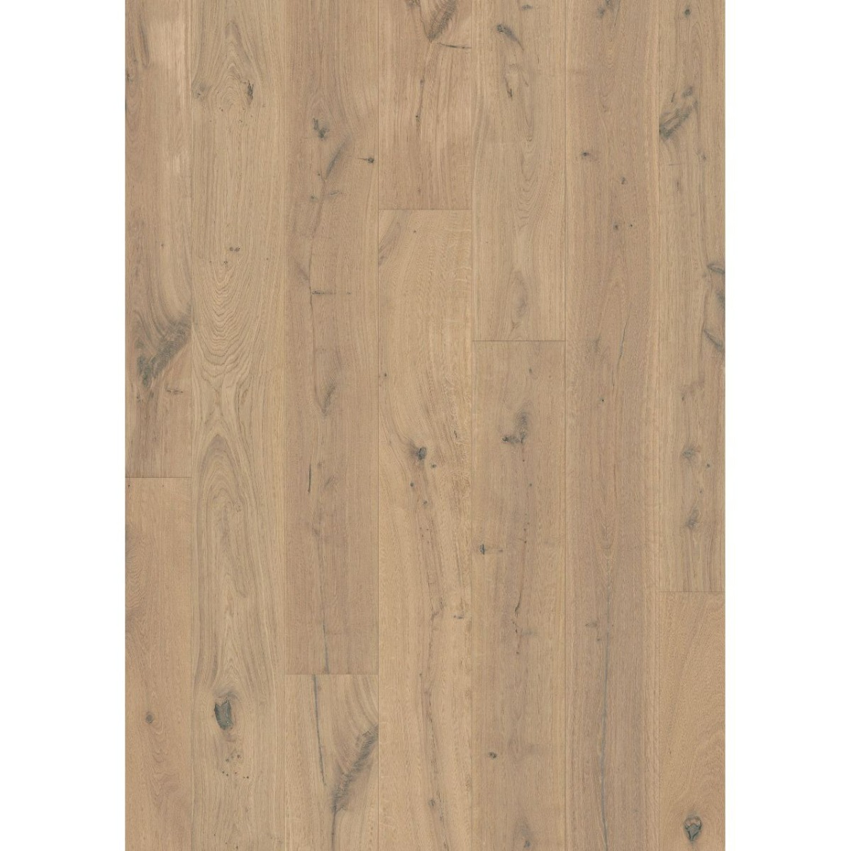 Le parquet Pergo Langeland Chêne Résidentiel présente des lames extra larges et longues, avec des joints sur les quatre côtés, donnant à votre maison une allure luxueuse.
