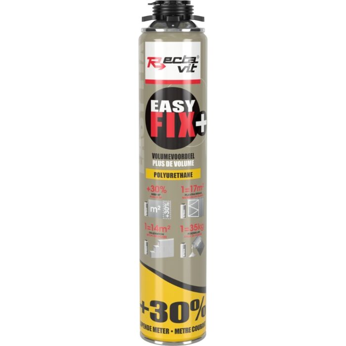 Rectavit Easy Fix 17m² NBS Colle de montage polyuréthane monocomposant à séchage rapide pour collages en construction sèche. Idéal pour coller des panneaux d'isolation, des plaques de plâtre, des blocs de béton cellulaire et d'autres matériaux de construction. Maintenant avec un meilleur rendement : Jusqu'à 17m² de collage par canette !