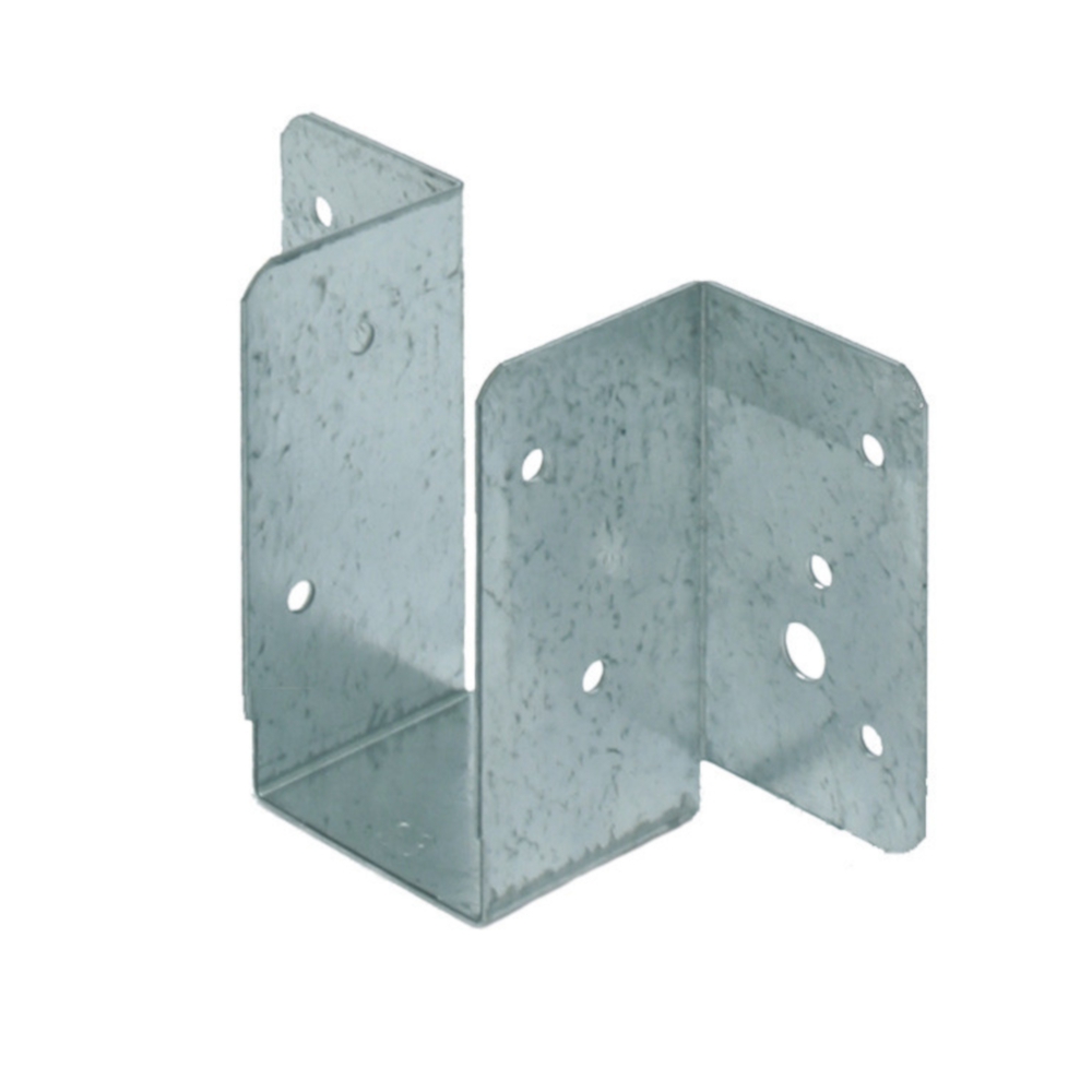 Un régulateur ou support de poutre avec des trous pour clous et boulons pour fixation sur murs ou poutres.
