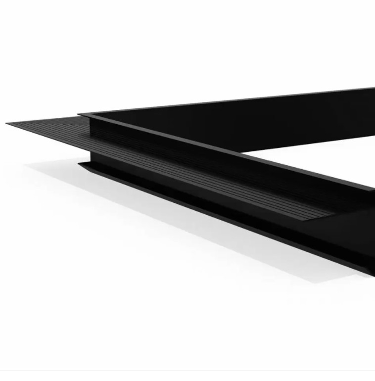 Un angle intérieur revêtu en aluminium RAL 9005 (dimensions 60 x 64 mm) et longueur 50 x 50 cm.