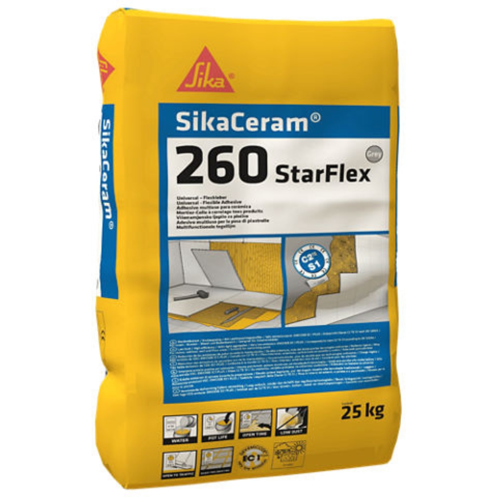 Utilisé dans les espaces humides (piscines, hammams), les sols industriels et sur chauffage par le sol, SikaCeram 260 StarFlex offre une adhésion fiable. Combinez avec une étanchéité Sika® et un mortier de jointoiement SikaCeram approprié pour un système Sika complet.