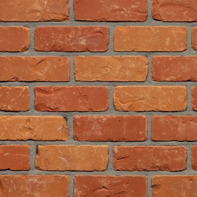 Particularités : la sélection contient des briques avec des coins et des bords arrondis, donnant ainsi un aspect vieilli de brique réutilisée. En raison de sa très fidèle approche, de sa teinte de couleur spécifique et de sa texture particulière, cette brique est extrêmement adaptée aux travaux de restauration, ainsi qu'aux nouvelles constructions au look ancien.