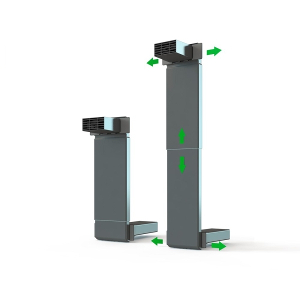 Il est possible de régler la hauteur de 350 à 550 mm (haut de la grille - bas de l'ouverture de la cavité). Un prolongement peut être ajouté en option pour allonger la hauteur de 150 mm.