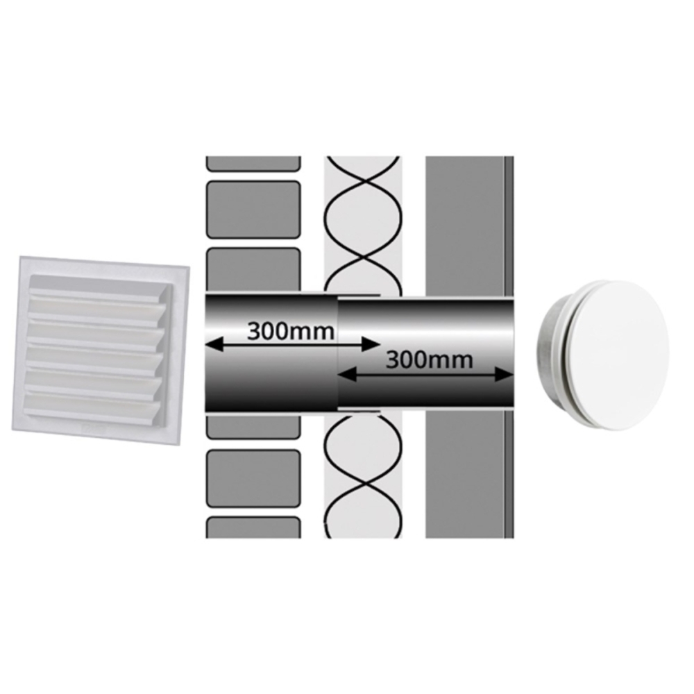 Ceci est un petit ensemble de traversée de mur qui se compose d'un gril extérieur, d'un tube de traversée de mur télescopique et d'un gril intérieur verrouillable. Ce système est idéal pour créer une ventilation supplémentaire dans une pièce.
