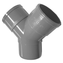 Een Y-stuk heeft een schuine aftakking (meestal 45° of 67°) en wordt gebruikt in horizontale leidingen om een vloeiende doorstroming te garanderen en verstopping te voorkomen.