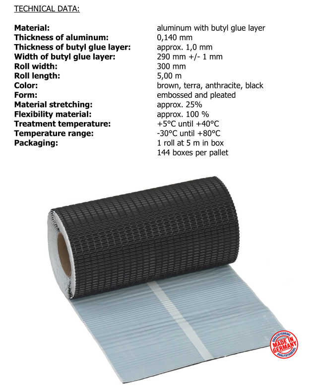 Aluflex dichtingsband 30cm 5m/rol bruin is een zelfklevend loodvervangend aluminiumfolie.