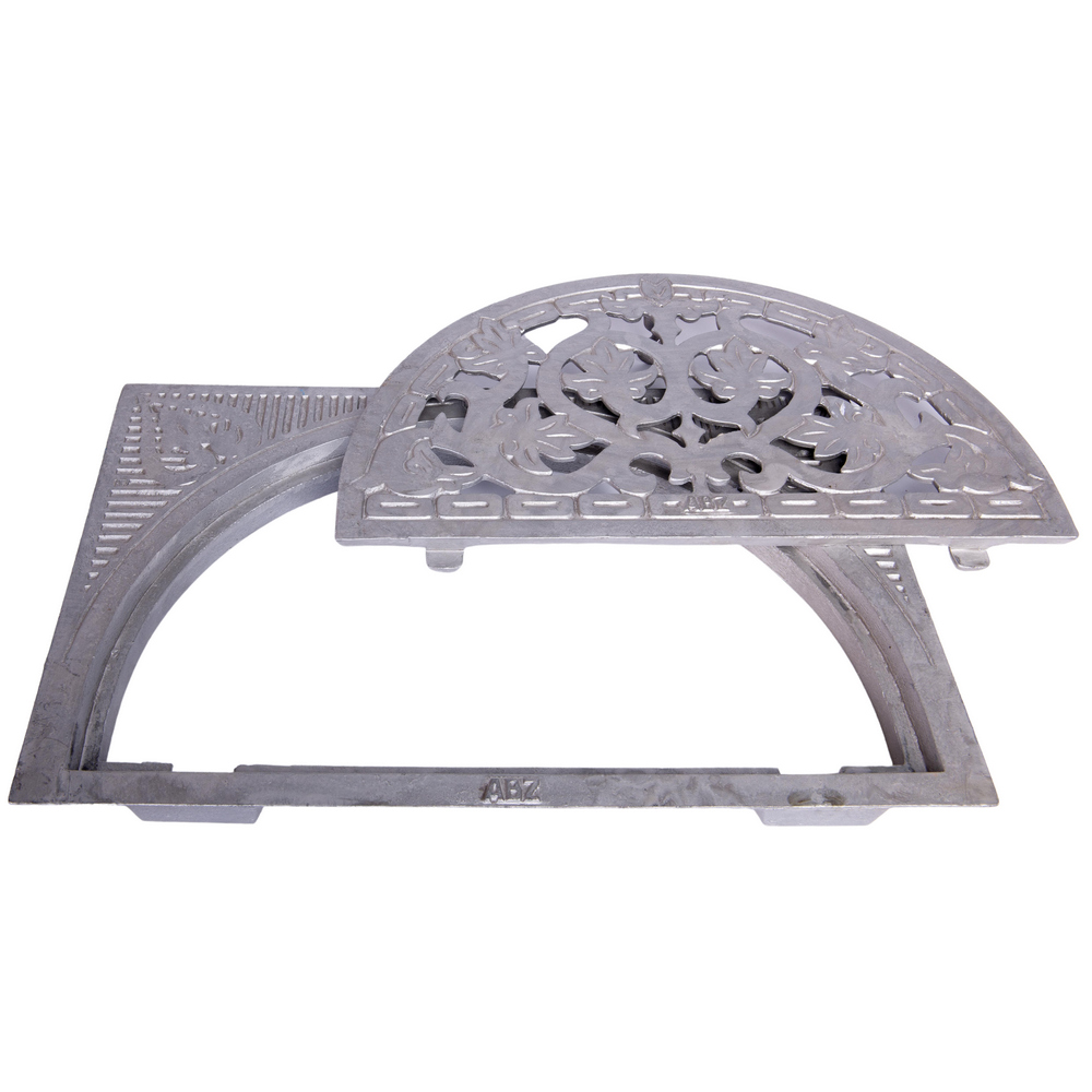 Een halve maan kelderrooster van aluminiumgieterij ABZ, Belgische productie.