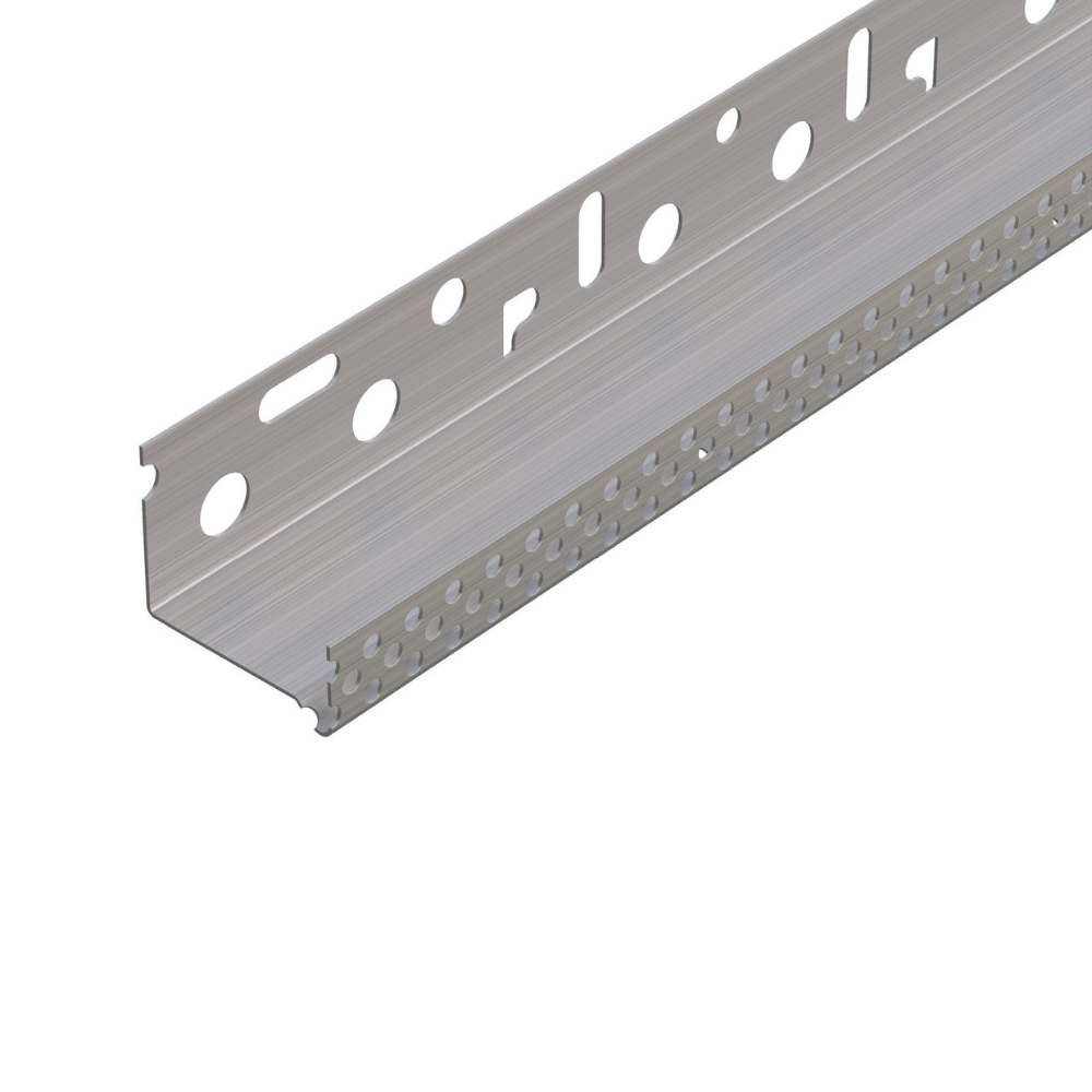 Het sokkelprofiel heeft ronde en langwerpige perforaties voor mechanische bevestiging tegen de gevel
