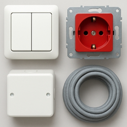 Elektriciteitsmateriaal omvat alle producten en elektrische onderdelen die nodig zijn voor een veilige en complete elektrische installatie, van kabels en schakelaars tot verdeelkasten en toebehoren.