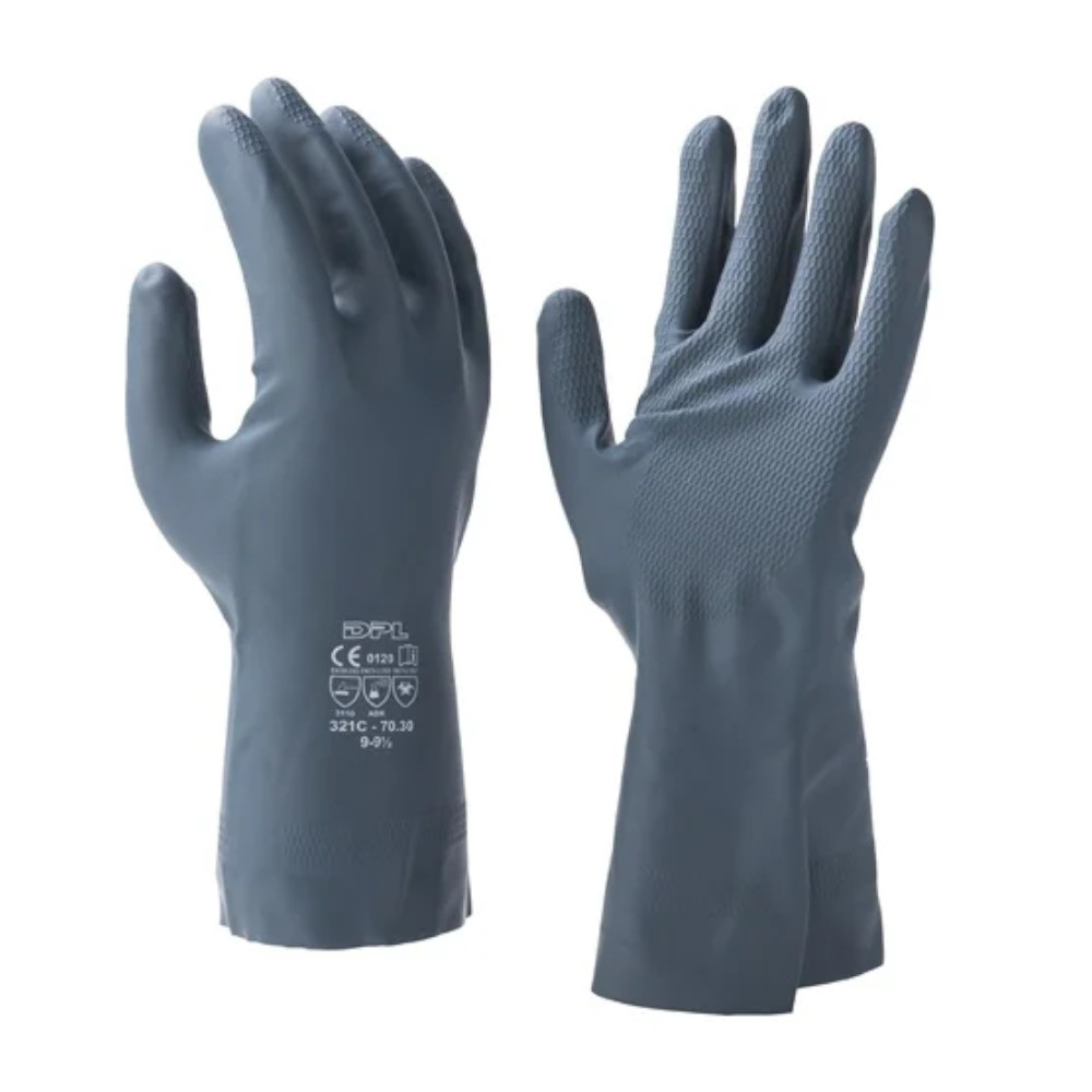 Deze chemisch resistente werkhandschoenen zijn comfortabele zwarte gechloreerde neopreen/latex handschoen voor een betrouwbare chemische resistentie. Ze hebben een katoenen vlokvoering om transpiratie te absorberen. Het antislippatroon zorgt voor een goede grip in natte en droge omstandigheden.