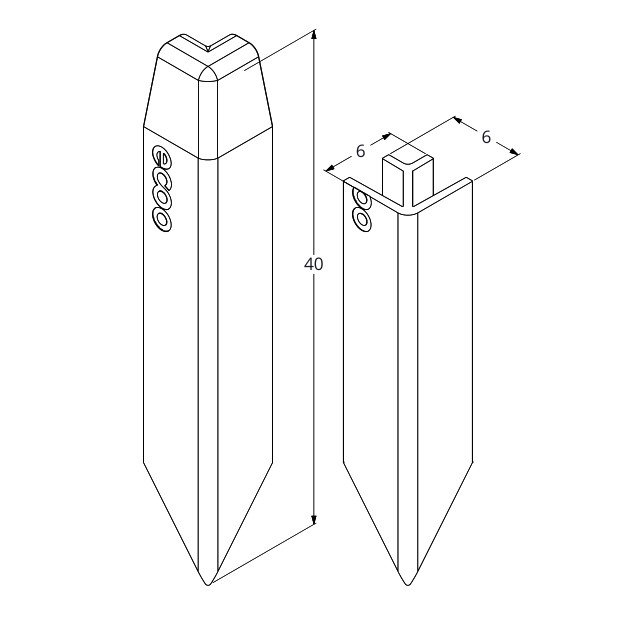 - hoogte: 40 cm (20 cm verankering onder de boordsteen)