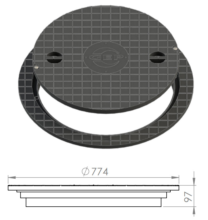 GEP rond deksel voor Flatline Filtertank inclusief telescopische schacht van 10cm en anti-slip profiel/dichtingsring. Deze set kan eenvoudig over een mangat van diameter 60 cm geplaatst worden en is bovendien belastbaar voor licht verkeer tot een wiellast van 600kg.
