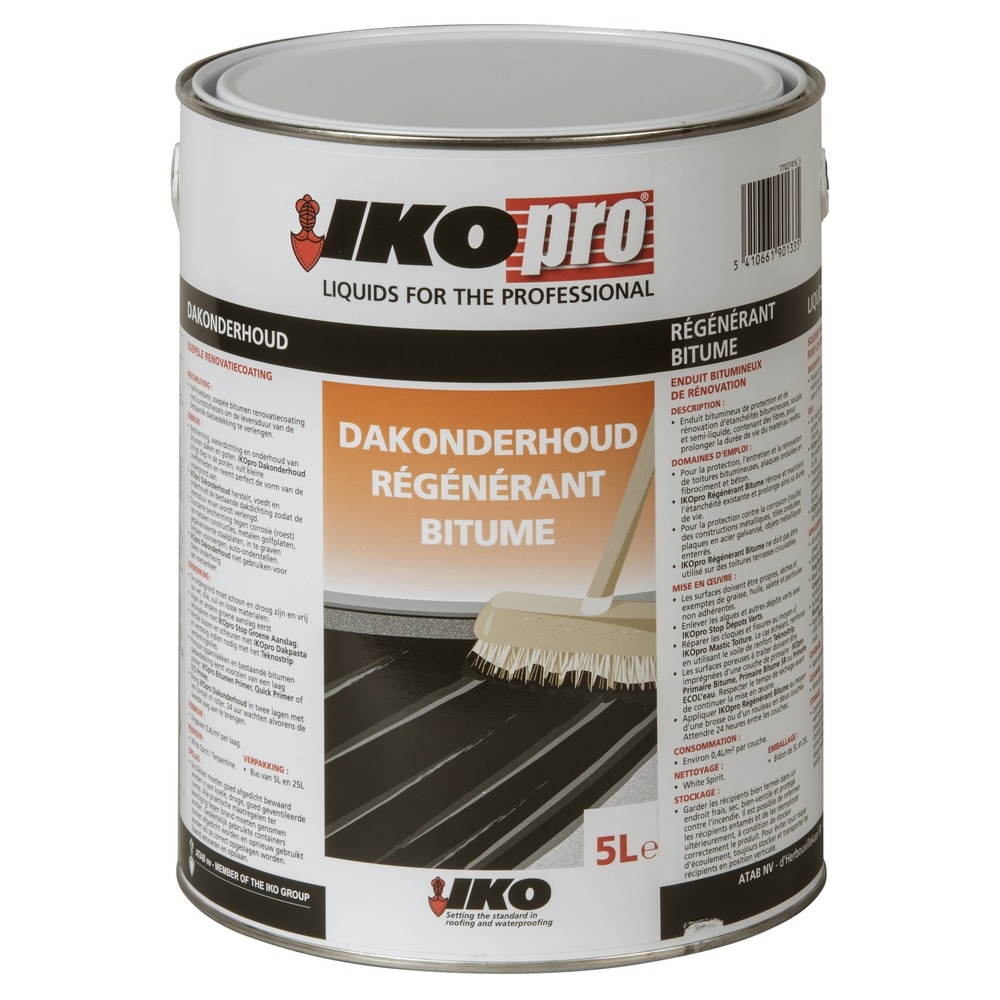 IKOpro Dakonderhoud 5 L is een soepele bitumen om de levensduur van bestaande dakbedekking (roofing) te verlengen. Het product dringt diep in de poriën en vult oneffenheden, herstelt en voedt de bestaande dakdichting. Bus van 5 liter