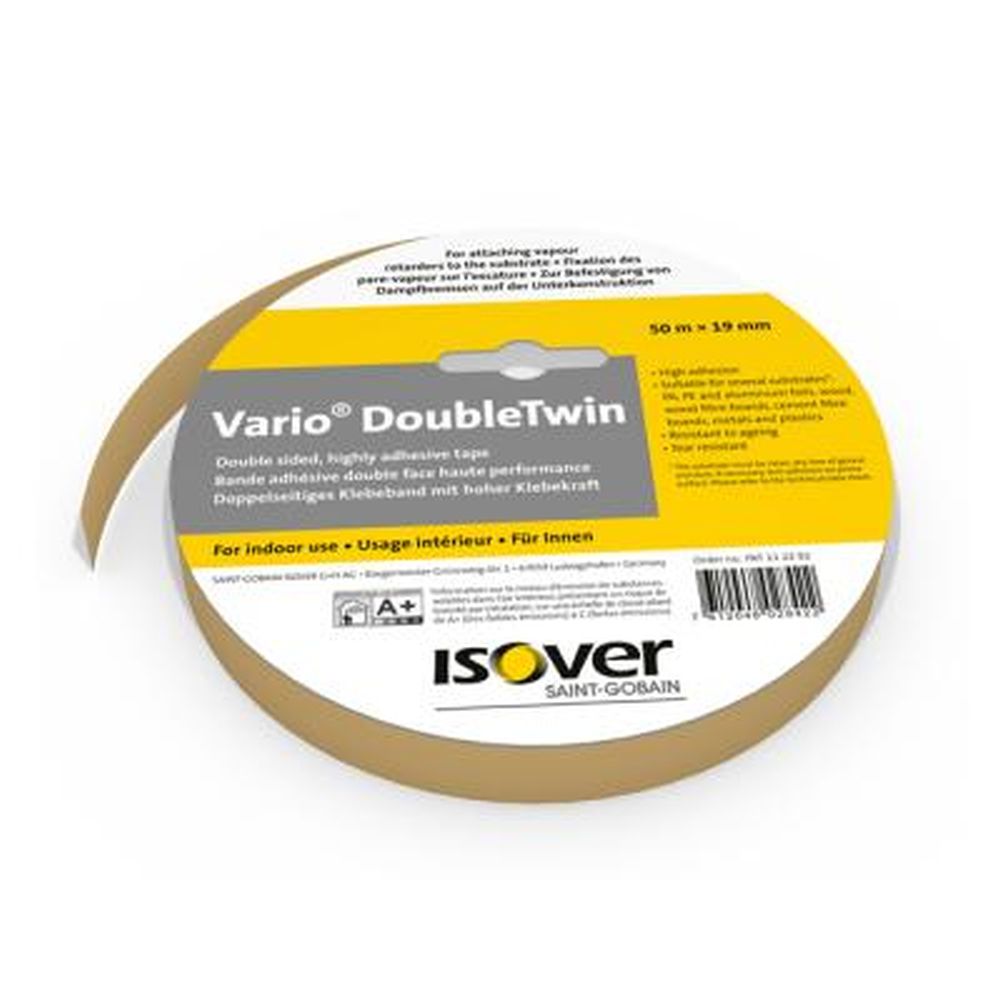 Isover Vario DoubleTwin dubbelzijdige luchtdichtingstape met lengte 50 meter, breedte 19 mm