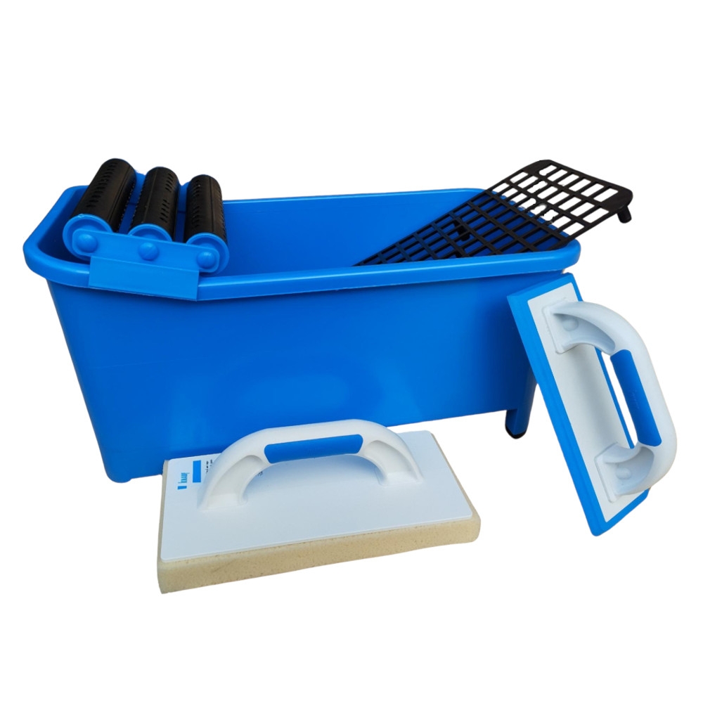 Deze set bevat alle essentiële gereedschappen die nodig zijn voor het aanbrengen van lijm, het vullen van voegen, en het reinigen van tegels die bedekt zijn met cementsluier. Dit maakt het een ideale set voor tegelzetters of doe-het-zelvers die met tegelwerken bezig zijn.