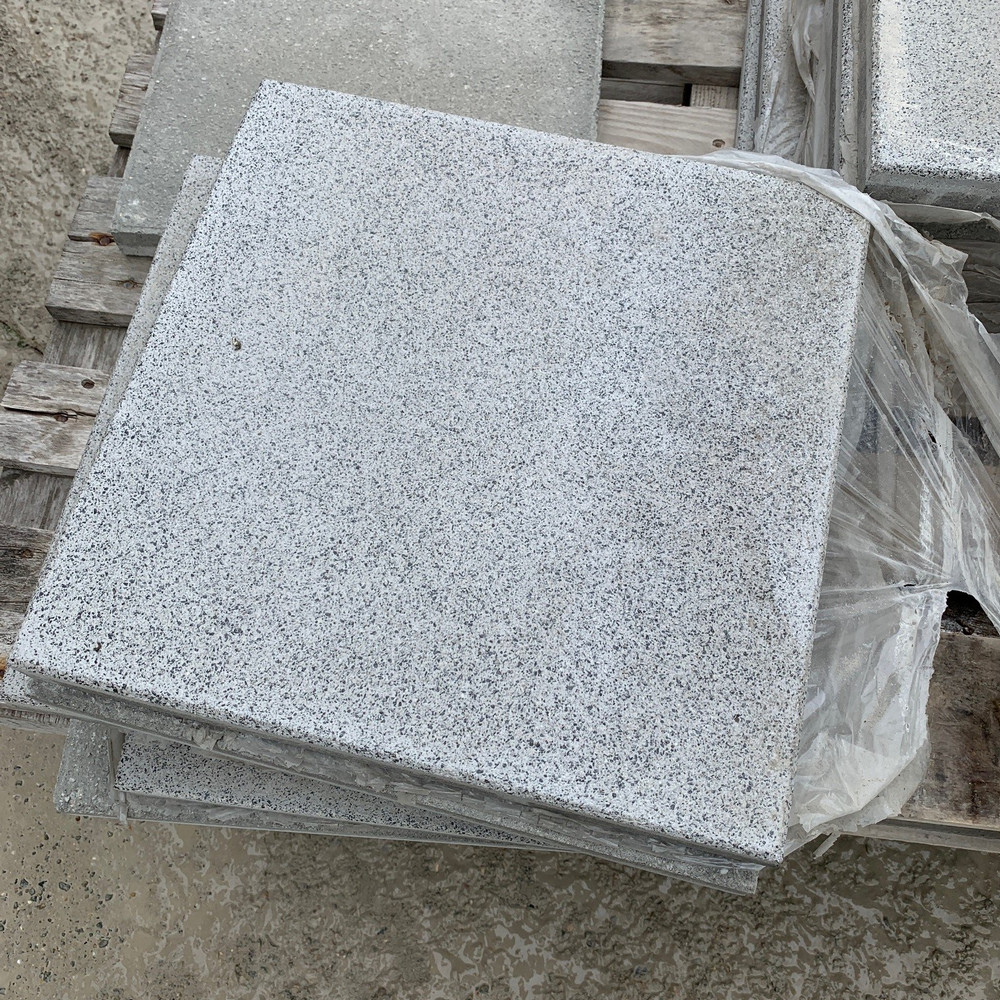 Marlux grijs gespikkelde betontegel met keramische toplaag, eindereeks.