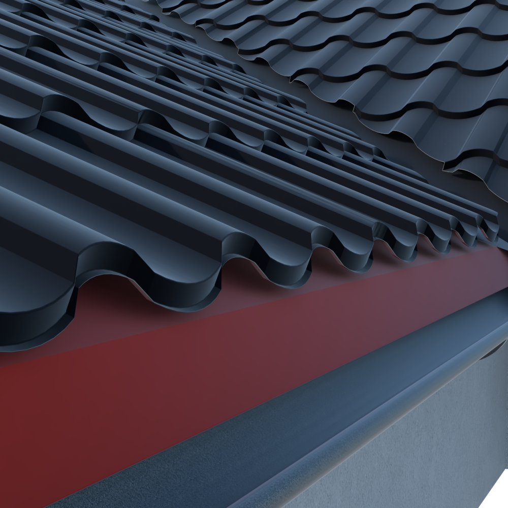Een gootslab voor waterdicht verbinden van de gevel met de dakplaat.