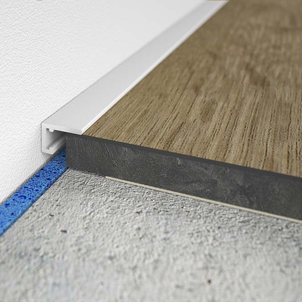 De Minileiste aluminium plinten creëren een discrete en innovatieve verbinding tussen vloerbedekking en muur, raam (kozijn) of traptrede. De Minileiste eindprofielen kunnen overal gebruikt worden waar verbindings- en dilatatievoegen constructief moeten worden nageleefd.