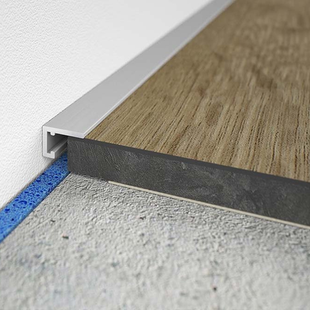 De Minileiste aluminium plinten creëren een discrete en innovatieve verbinding tussen vloerbedekking en muur, raam (kozijn) of traptrede. De Minileiste eindprofielen kunnen overal gebruikt worden waar verbindings- en dilatatievoegen constructief moeten worden nageleefd.