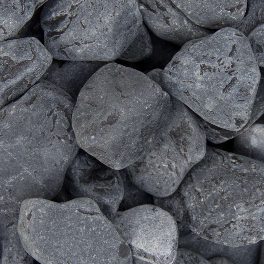 Deze ronde keien zijn intens zwart (nat) tot donker anthraciet (droog). Exclusieve mooie ronde keien in diverse maten op bestelling beschikbaar.