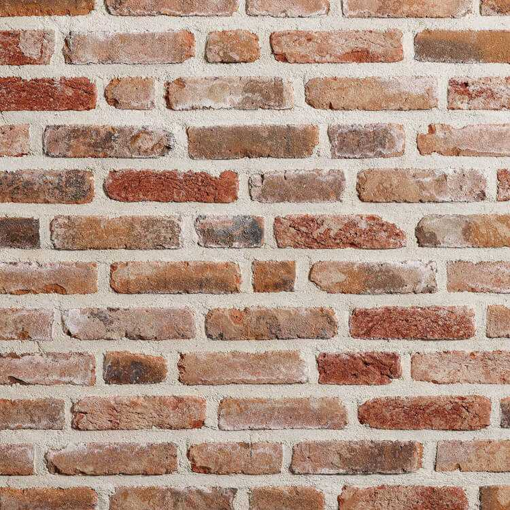 Antwerps Klompje is een rood-bruin genuanceerd met lichtblauwe en oker genuanceerde gevelsteen uit de Traditional reeks van Olivier Bricks.