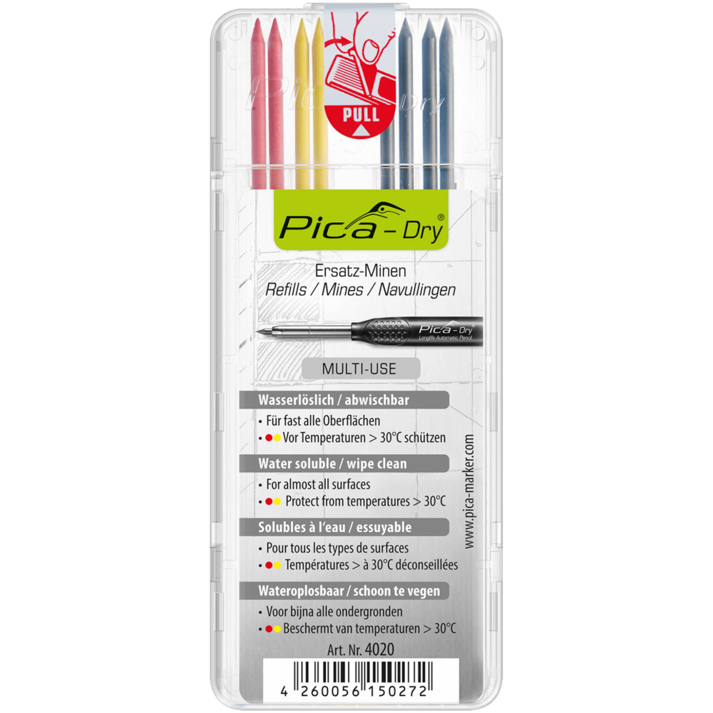 Navulling grafiet voor het PICA DRY Markeerpotlood, een potloodstift met vaste vulling waarbij de vulling automatisch naar buiten schuift.