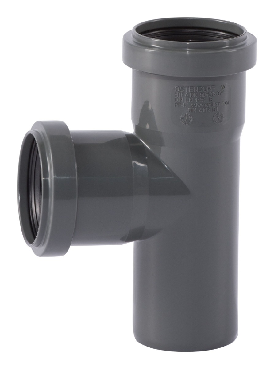 Sanitaire T-stuk 87° PP Ø50 Grijs