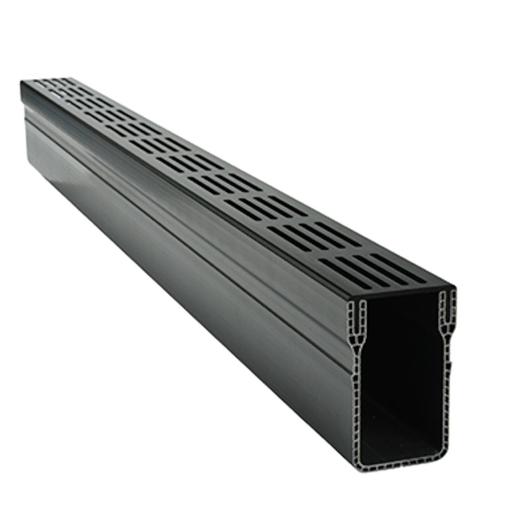 De Stardrain is een afvoergoot die bestaat uit een kunststof (PVC) gootelement met een natuurlijk, zwart of cortenstaal aluminium designrooster.