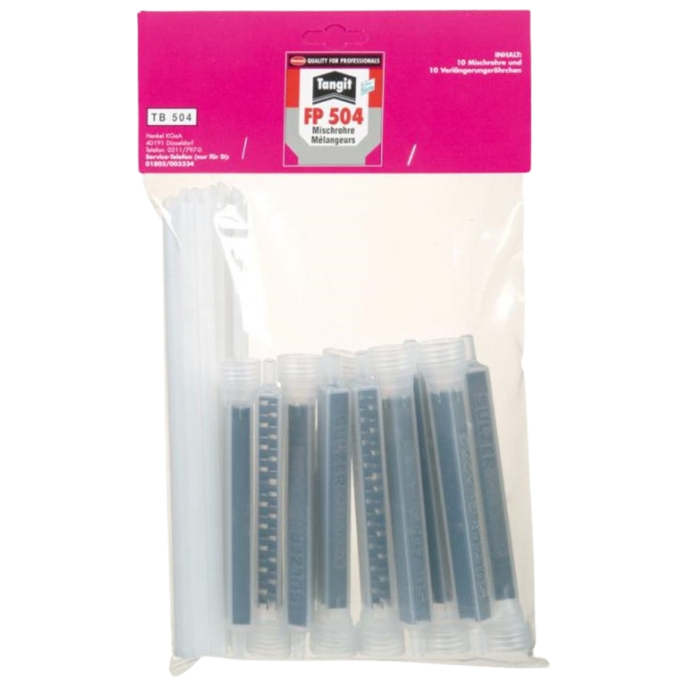De Tangit FP 504 mengtuit is speciaal ontworpen om de twee componenten van Tangit M 3000 expansieschuim homogeen te mengen tijdens het verwerken met het Tangit PP 6 pistool. Door het spiraalvormige binnenwerk worden hars en verharder gelijkmatig gemengd, zodat een consistent schuim ontstaat dat voldoet aan de strengste eisen voor gas- en waterdichtheid.