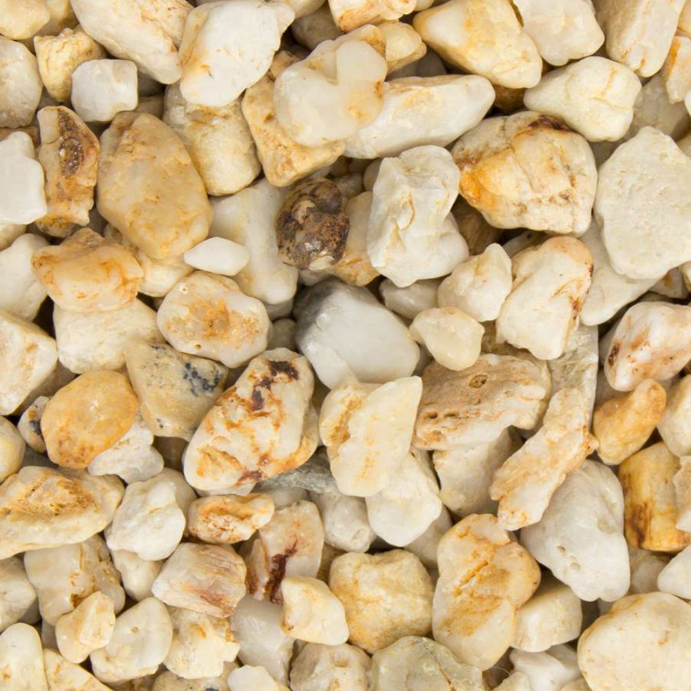Taunus Kwarts is een geel-witte kwarts gebroken split, uitermate geschikt voor decoratieve doeleinden dankzij zijn natuurlijke rondere vorm
