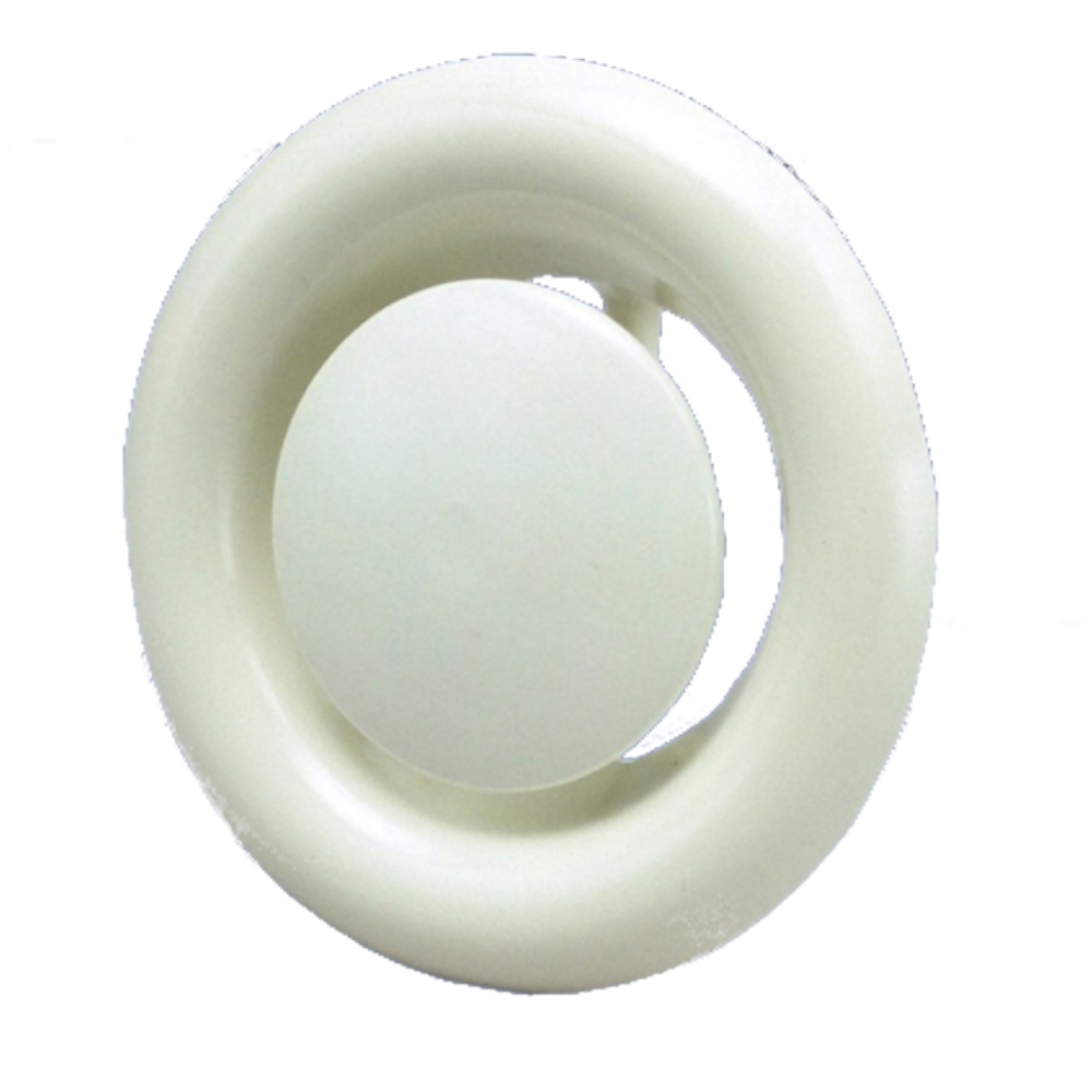 Stalen ventilatieventielen voor afvoer van lucht. Geschikt voor kanaalmontage, met afdichtingsring van schuim.