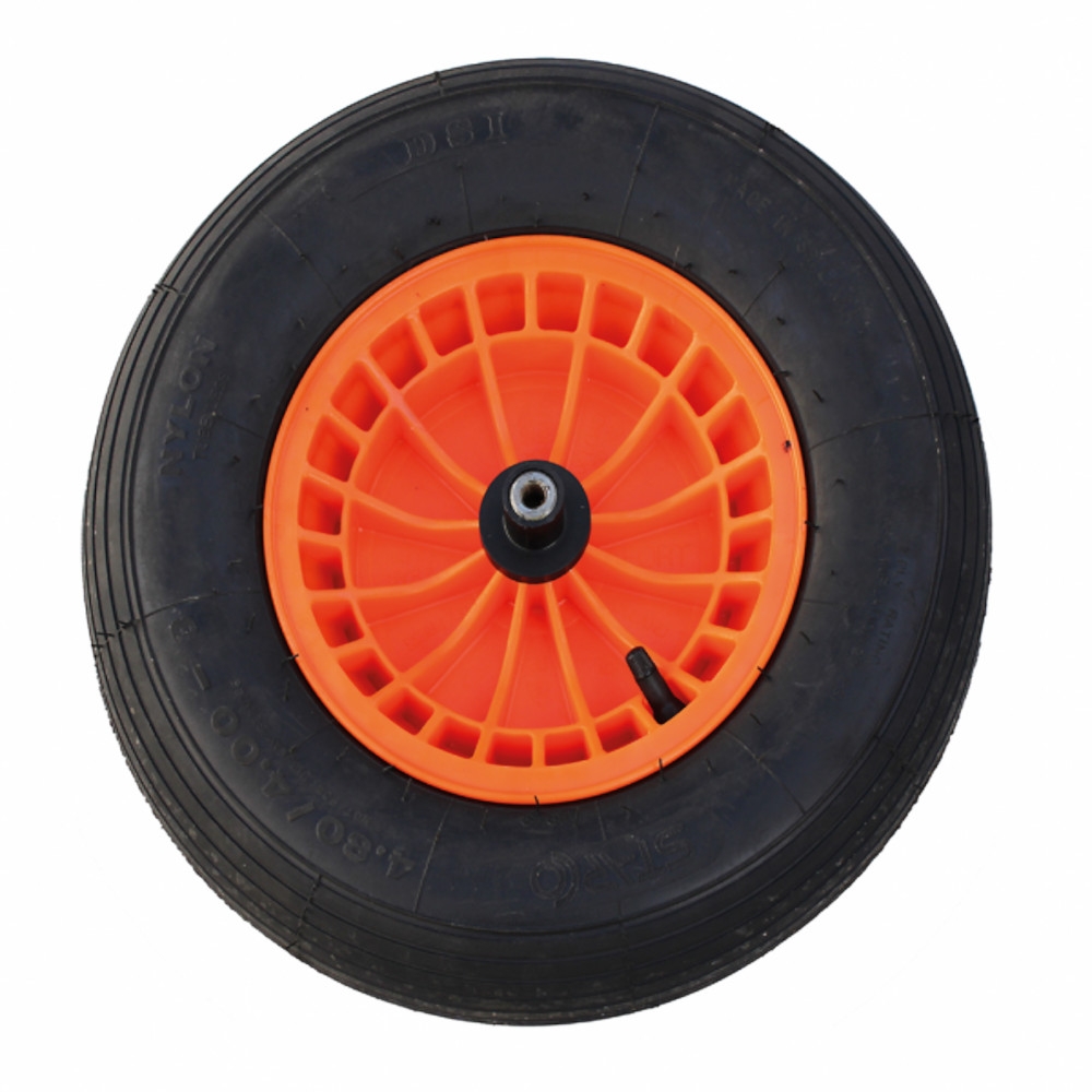 Een reservewiel met PP velg en frame voor een Vabor kruiwagen.