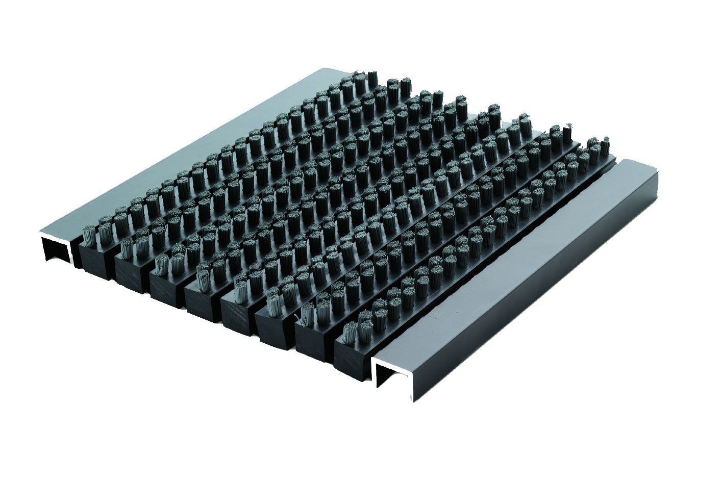 Econobros is een opbouw oprolbare borstelschraapmat (met geschrankte borstels) voor buiten die grof vuil zoals zand, gravel en andere van de schoenen reinigt.