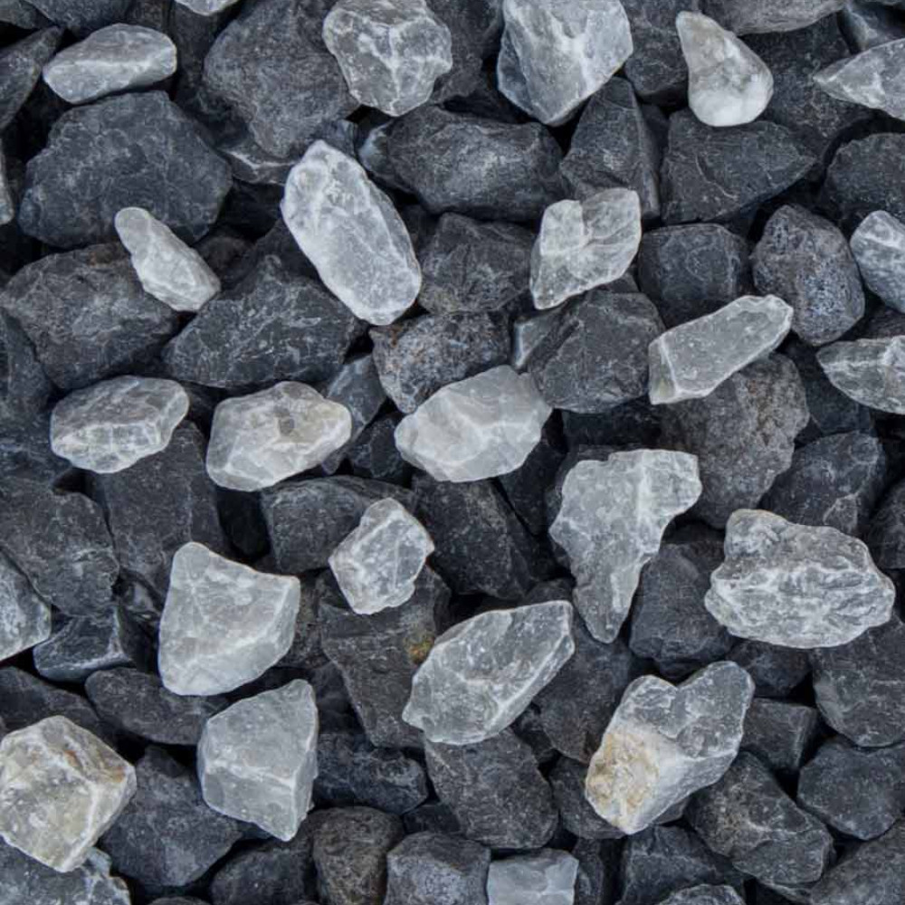 Zebra Split is een mengeling van zwarte basalt en ice blue split die ervoor zorgt dat ze dankzij de hoekige structuur als halfverharding voor oprit of als decoratieve grindstoort met karakter uitermate geschikt is.