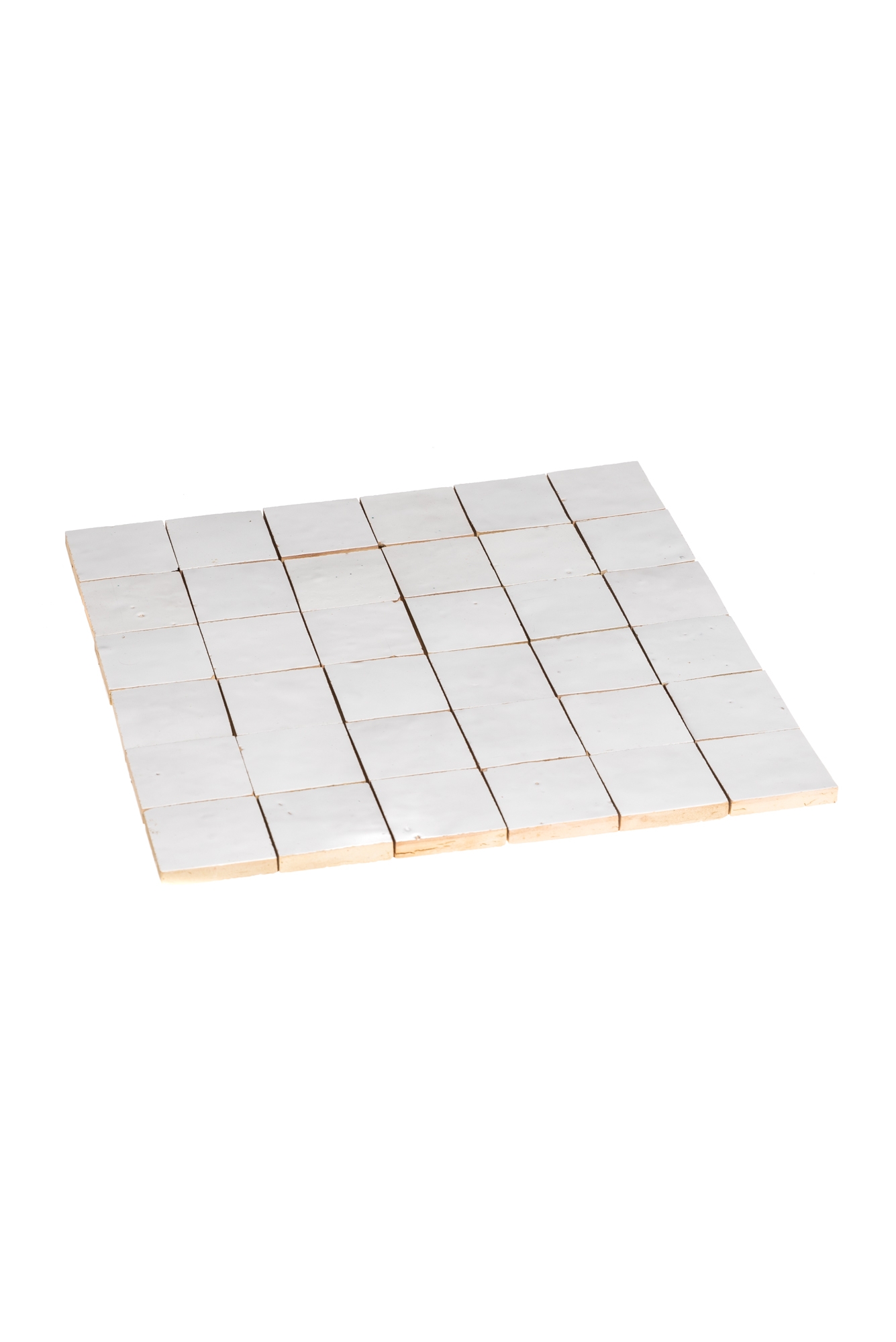 Zelliges Blanc Neige 5 x 5 cm of Marokkaanse tegeltjes zijn handgemaakte tegels van natuurlijke klei met fijne voeg en subtiele kleurschakering.