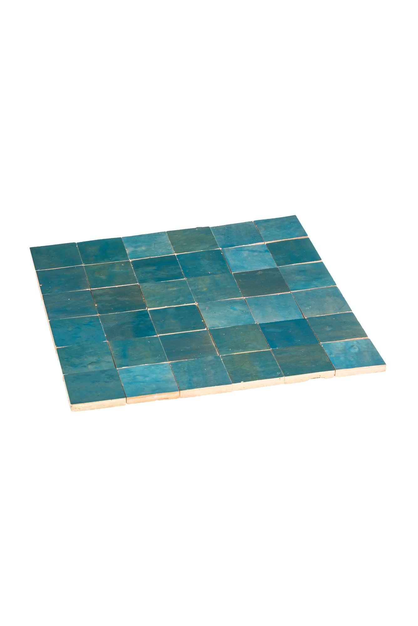 Zelliges Lazuli 5 x 5 cm of Marokkaanse tegeltjes zijn handgemaakte tegels van natuurlijke klei met fijne voeg en subtiele kleurschakering.
